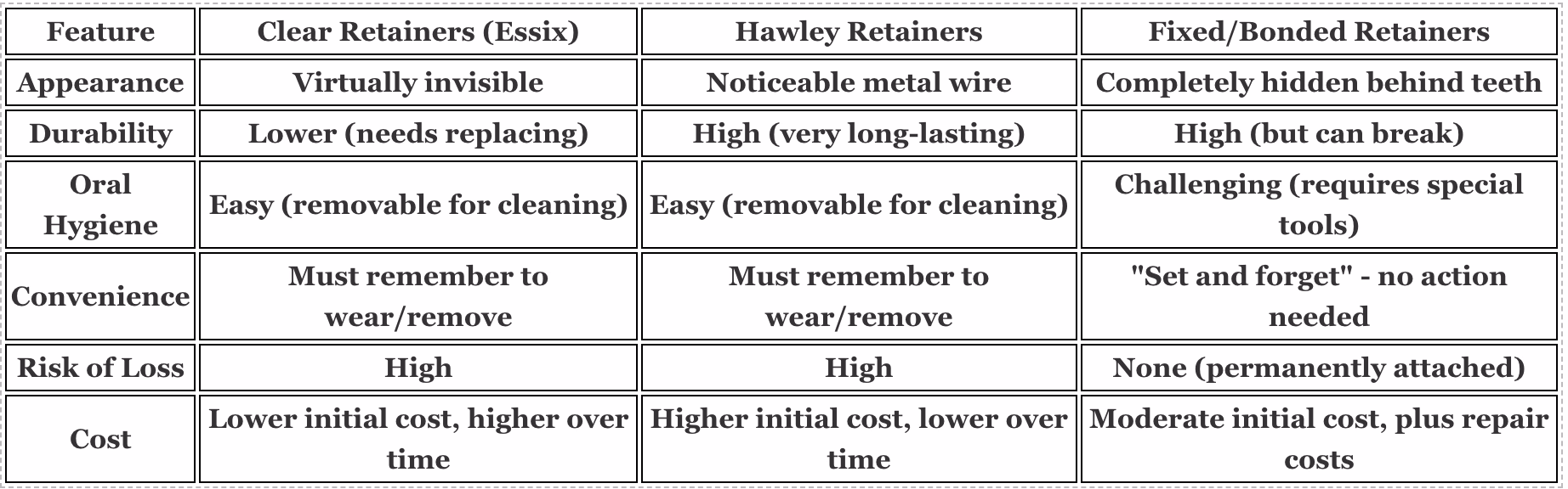 Comparing Retainer Types At a Glance
