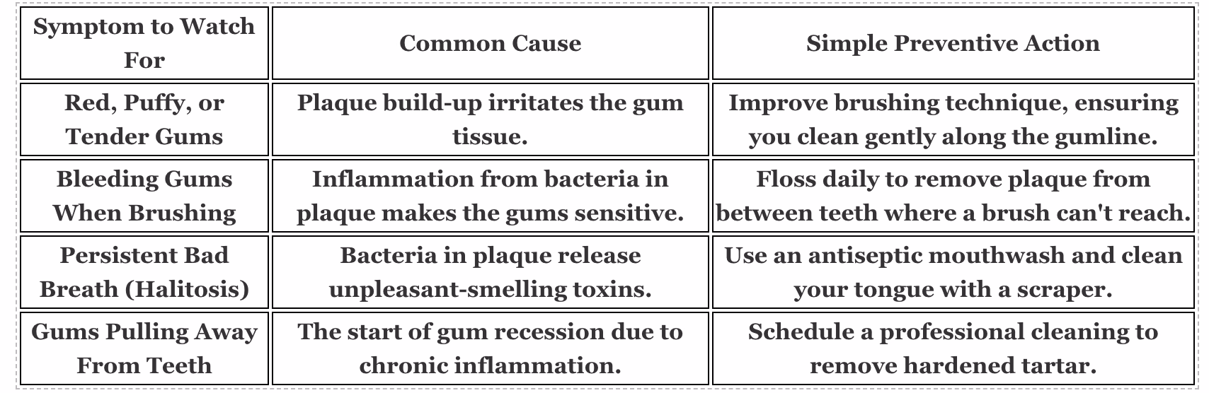 Recognising even one of these signs is your cue to step up your oral hygiene routine. It’s your body’s way of asking for a little more attention.
