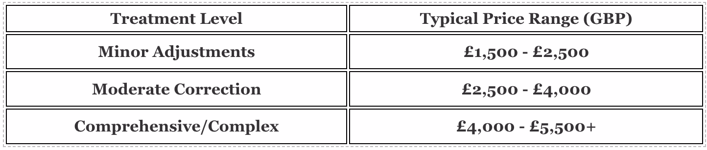 Estimated UK Clear Aligner Costs by Treatment Type