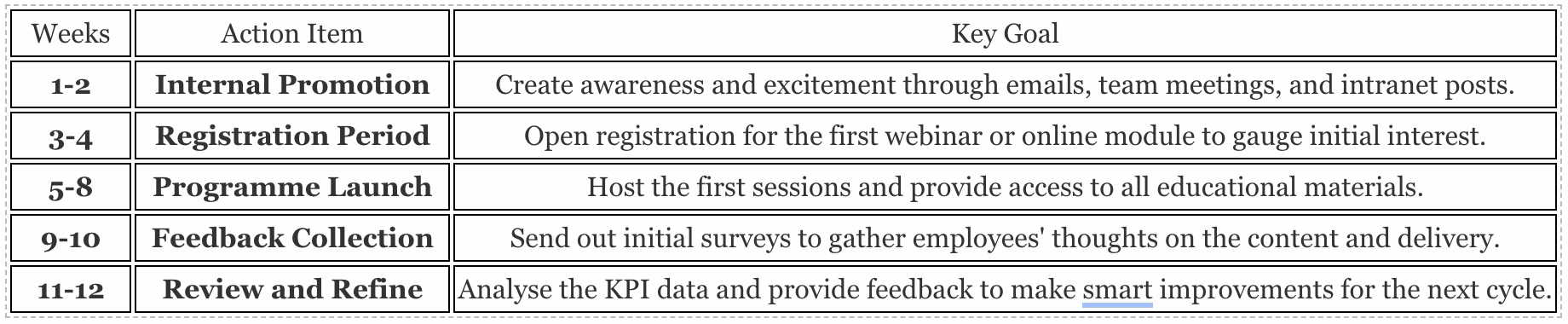 Don’t just measure attendance; measure change. The most powerful KPIs will show a clear shift in employee knowledge, behaviour, and overall health outcomes over time.
