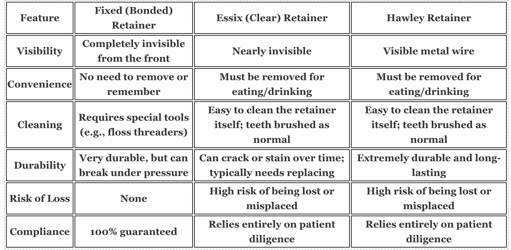 To help you weigh the pros and cons, here’s a quick breakdown of the three most common retainer types. This should give you a clearer idea of which one might fit best with your lifestyle and priorities.
